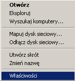 1.Klikając prawym przciskiem myszy ikonę Otoczenie sieciowe wybrać Właściwości.