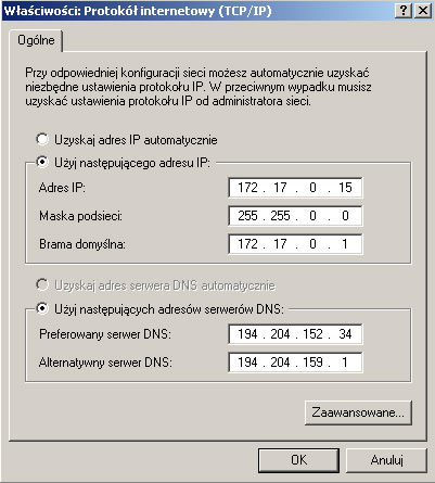 Konfiguracja połączenia internetowego:
